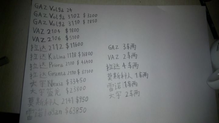 车辆价格表