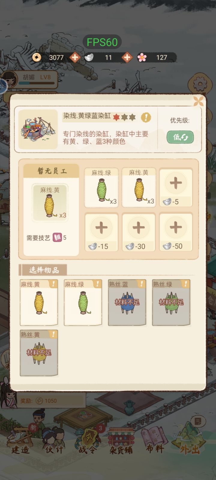 玩这个游戏重置了10多次了,有的玩家玩不明白,在这里我说一下,也算给各位介绍一下游戏应该怎么玩,初期先升级到5级,可以解锁鬼市,哪里有各种物品卖,还有伙计属性提升和猪脚提升的东西,以后随着主角等级提高,还会更新好多东西,然后再说造布机器,不要乱解锁布料,不然没地方买,这个和等级有关,比如15级出的羊毛,得16级以后才能买到。还有就是写不下了,有不明白的群里问我就是了。游戏还有很多不足之处需要更新,