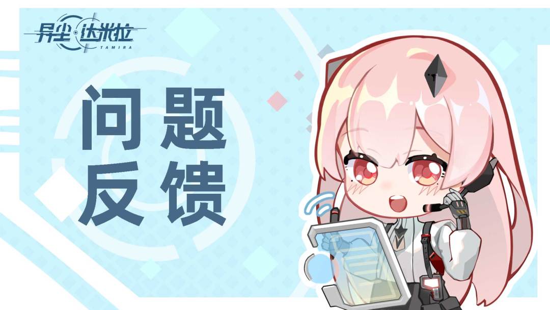 尊敬的长官: 《异尘:达米拉》今日全平台公测开启,欢迎来到达米拉星! 为了能向大家提供更好的服务器,如果您在游戏中遇到任何问题(意见建议/BUG),都可以在此贴向我们反馈。 官方会根据BUG的严重程度以及上报反馈的先后适当给予奖励。 【账号ID】(主界面左上角查看) 【游戏角色名】 【BUG或意见建议描述】 【问题截图】(如有) 【手机型号】 【手机系统版本】 【联网方式】 (4G/5G/WIFI