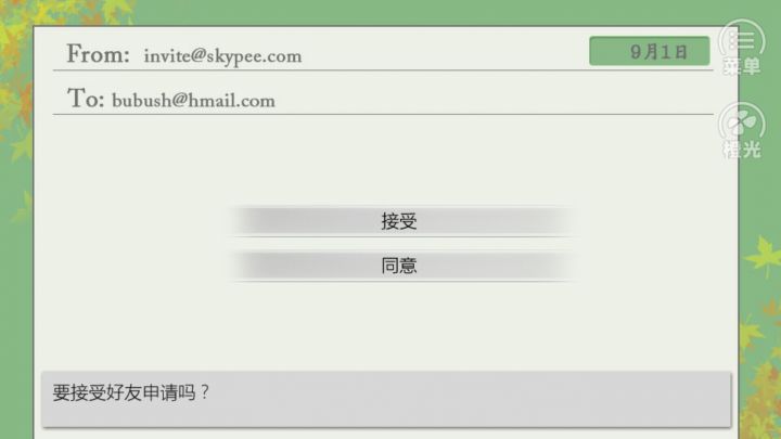 转载自百度,侵删友情主题【结局3:世代交好】询问工作是否顺利--------不用担心,过几天熟悉了就好了---------询问旁边妹纸的情况--------发生了什么事吗--------询问男友情况---------羡慕嫉妒恨--------说一说自己的事----------也要请我当伴娘-----嗯,我一直都在--------接受【结局4:一生挚友】询问工作是否顺利--------不用担心