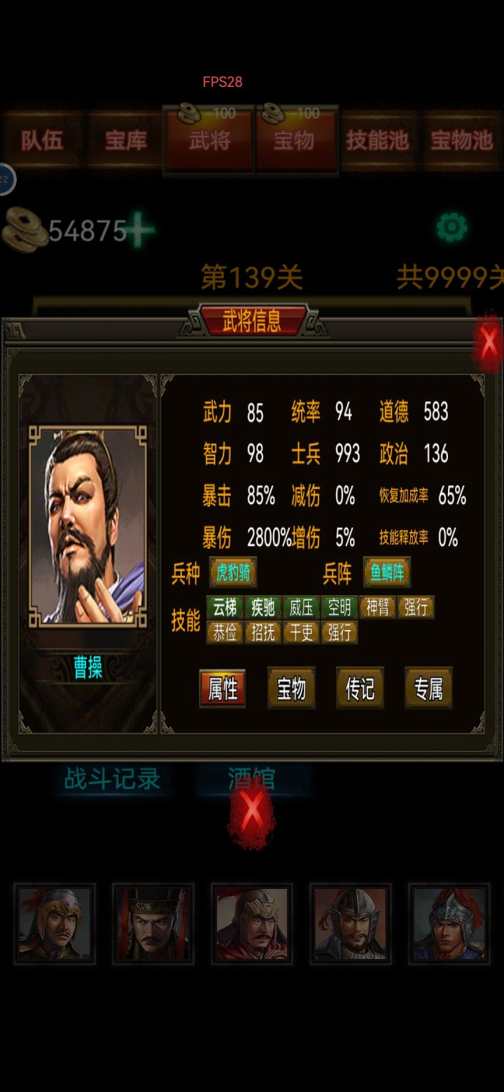 当前版本最容易构建的阵容是以武力为主 开局不看视频刷三次,主要刷带百战 骁勇 骑射 神臂的天赋人物武力90以上,统率 政治越高越好,技能带神臂 骑射的作为主c ,或者技能是神臂 骑射 叱咤 冲车 有两个就是绝对主c了,一般有一个就可以玩了。技能好的,武力80多也可以玩,我最好刷到个84武力带骁勇骑射神臂的当主c。然后就可以看广告刷四个带百战或者骁勇技能的人物,其他不做要求,主要就技能有百战或