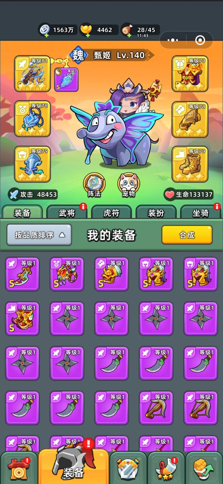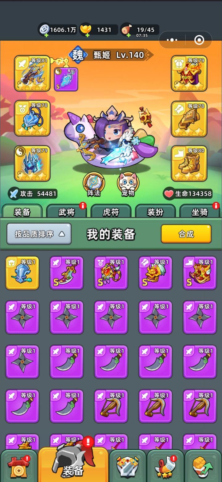 武器寒冰剑羽扇的纯法系流,寒冰整套。优点是目前游戏中最稳定上限最高的装备搭配。缺点单体伤害不足,打boss会有些慢。武器连弩方天的纯物理流,天工整套。优先是最强单体伤害,缺点是没有控制,很多关卡根本看不见最后的boss。活动地图,打榜地图表现优秀。纯伤害(连弩)在绝大部分游戏中都需要数值碾压,要么回头碾压低级图,要么氪米碾压平级或者高级图。所以,18天的红连弩能让你爽的飞起,因为那个阶段红连弩