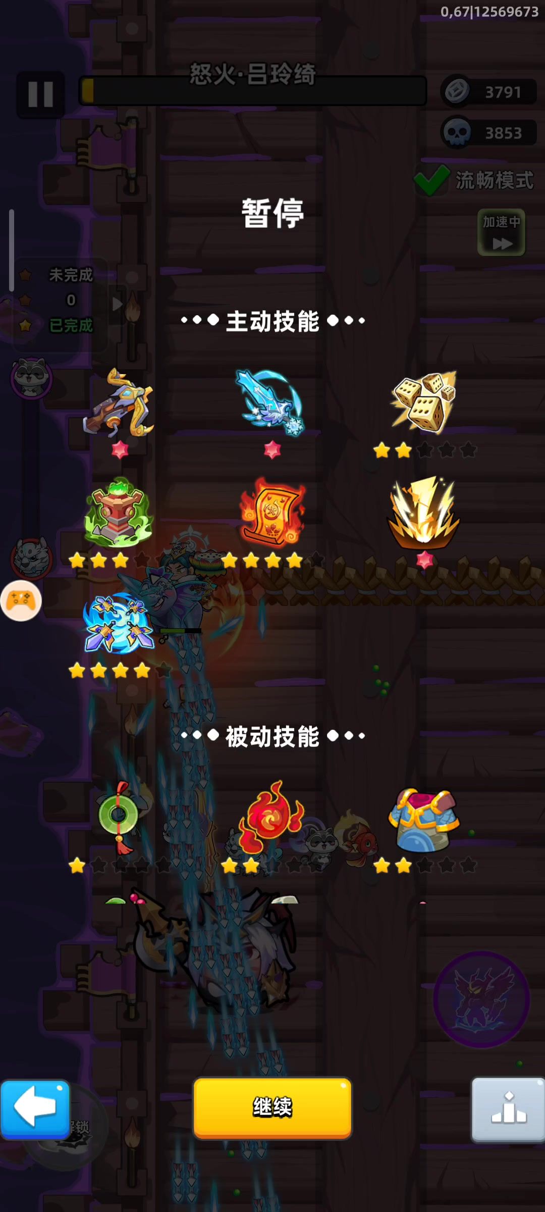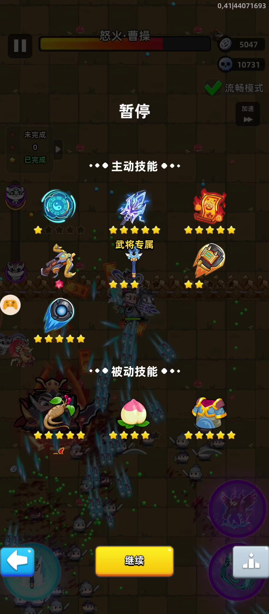 满级人参,桃子,护甲在面对两个BOSS黄忠分身和一堆小兵还有满屏的弹幕肯定会失误,肉起来是关键,连弩到15分钟前超武就行,这关也不吃红连弩的buff,黄三星应该也差不多,面板够用就能过