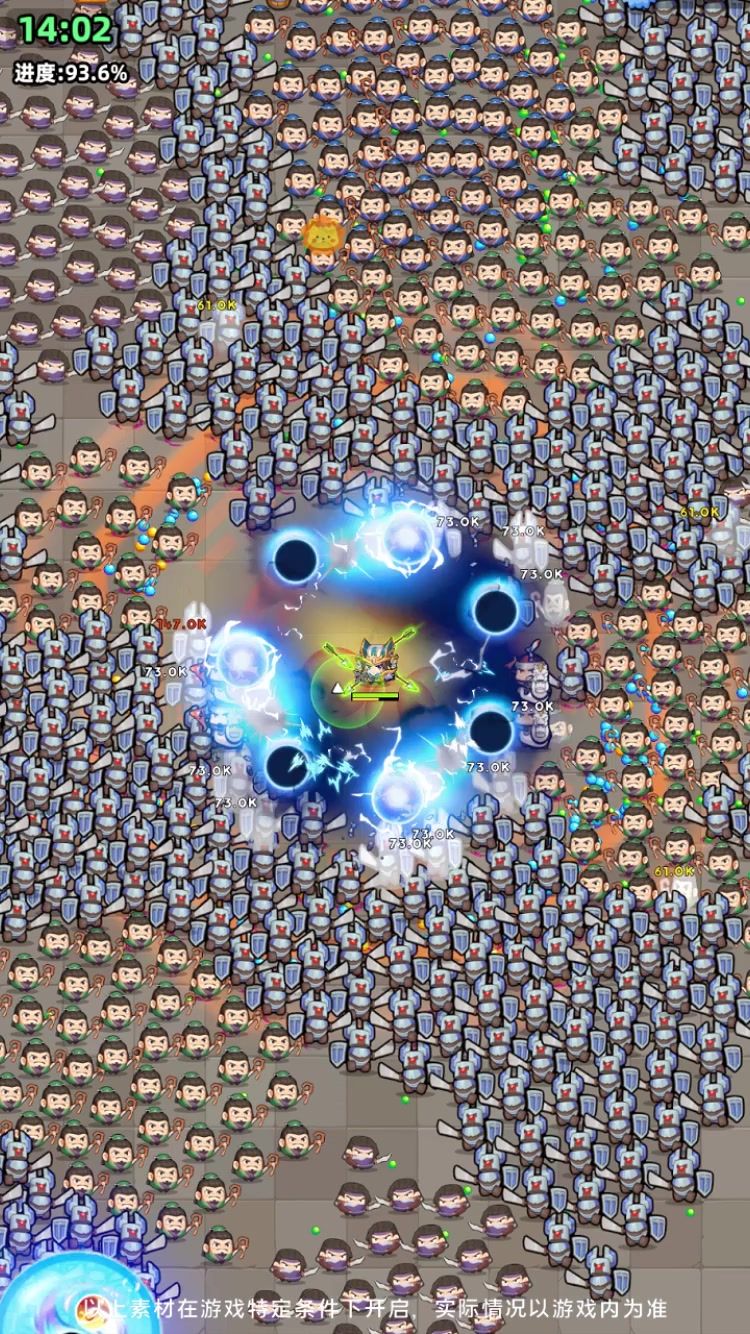 刚开始需要走位,技能升到满级,从四面八方无死角击溃小怪 快来体验极致割草爽感吧~