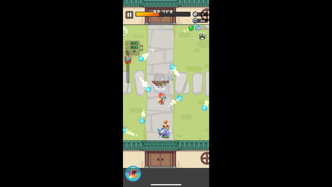 攻击27000 普通57关 减cd合计: 金色cd项链30 鞋子状态30 护臂被动没满大概也有二三十 这攻击速度已经很夸张了 那种被铁桶围死的状况估计得再往后十开关才会出现吧 目前基本横着走[表情_流口水]