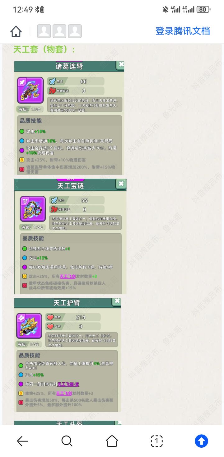 武器寒冰剑羽扇的纯法系流,寒冰整套。优点是目前游戏中最稳定上限最高的装备搭配。缺点单体伤害不足,打boss会有些慢。武器连弩方天的纯物理流,天工整套。优先是最强单体伤害,缺点是没有控制,很多关卡根本看不见最后的boss。活动地图,打榜地图表现优秀。纯伤害(连弩)在绝大部分游戏中都需要数值碾压,要么回头碾压低级图,要么氪米碾压平级或者高级图。所以,18天的红连弩能让你爽的飞起,因为那个阶段红连弩