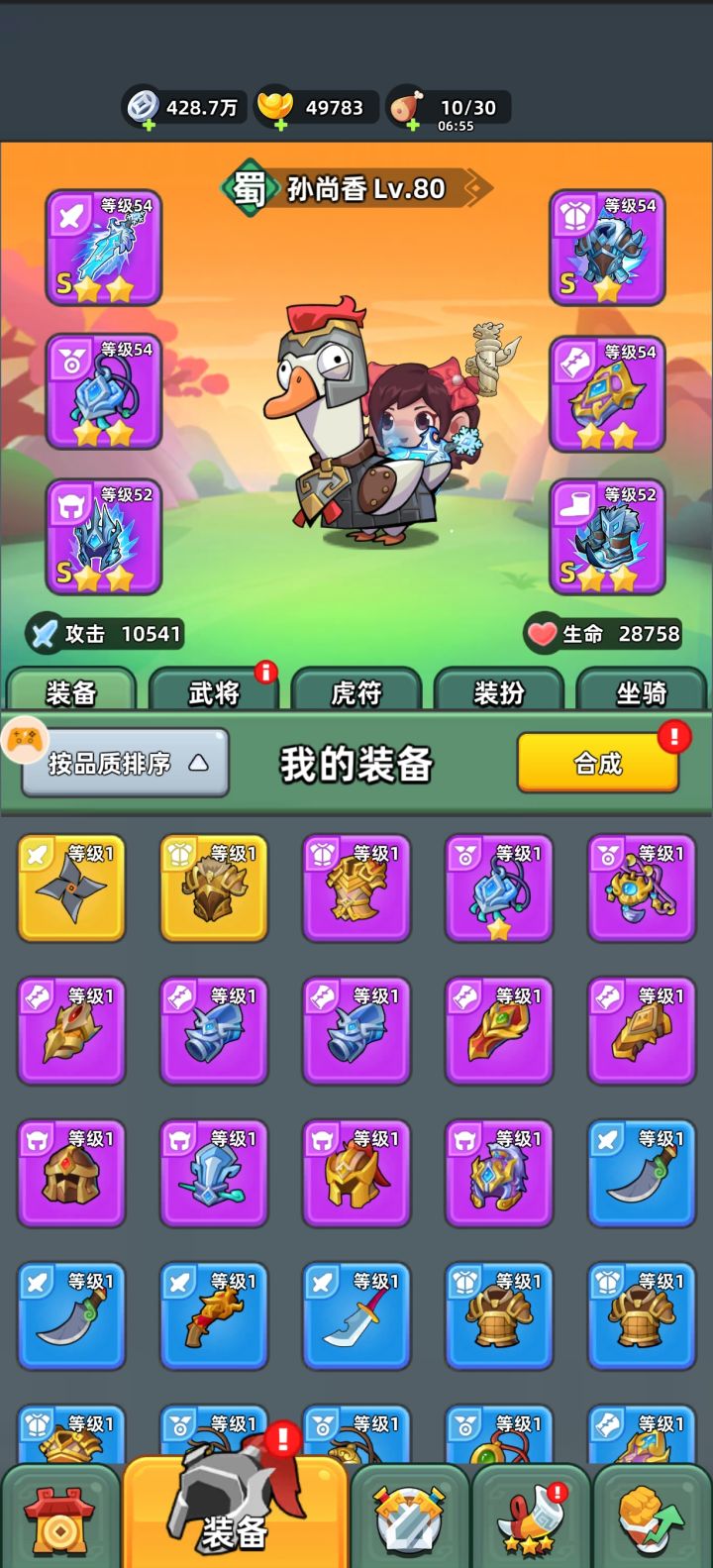 嗯把我的号送出去了,但是还是需要交代一些临终事宜,想着也算是一些发展的建议,干脆最后再写个攻略好了。在下面我会解答一些疑问,仅限今天,以后再来的疑问我看情况吧,主要游戏是会变的,我不一定到时候还懂。废话不多说,下面开始。关于装备 装备选什么我没啥建议,你们去找闯关大佬吧,我主要喜欢整套装备就抽了朱雀寒冰套。 ①S装备抽取。先抽武器,红了以后再抽部件,按谁红的词条最好用的优先级来选择顺序。0氪