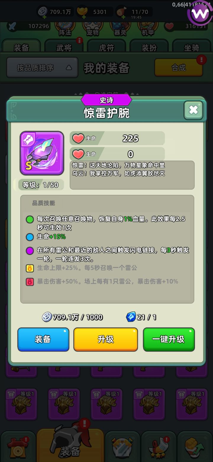 答案是混搭惊雷护腕行不通,惊雷套的单件雷公上限是2个,混搭衣服加护腕场内最多4个,增伤40%而已。而天工护腕局内最大是100%对比下来怪多的地图混搭惊雷护腕会少了60%的暴击伤害当然后期很多地图见到最终boss小怪也可能只杀了两千多个,但天工还堆血量。
