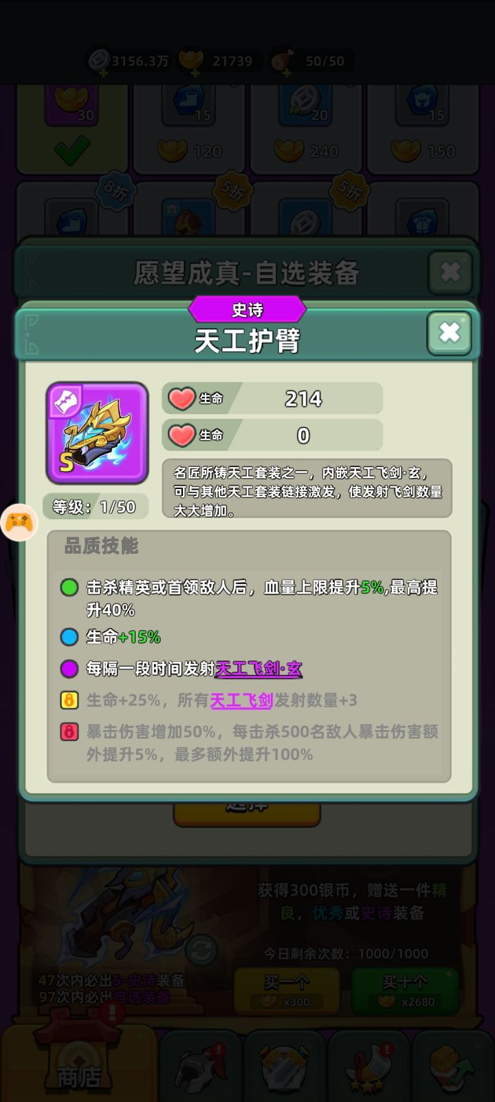 任务每天拉满,另外购买了43次耗费21500元宝,又成穷光蛋了。过程中抽到了两个紫S装备与各种其他紫装。下一步等兑换活动搞红头跟天宫链子。不知道有没有走错路。武器那么多也用不了,什么时候出个红武换红武,红弩直接换红寒冰多爽。