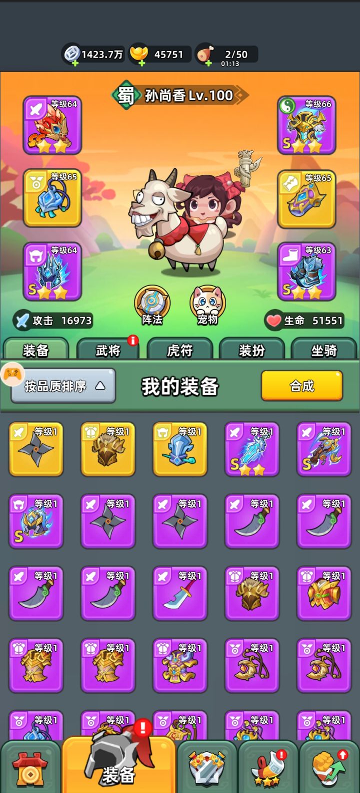 活越做满,扫荡满,加43个羽毛嫖到手。第50次抽的七星刀,赶上了以旧换新,换了一个诸葛连弩。紫色扇子被动技能是人参。特点是出手超快,体验感拉满,丝滑般过了精英10。