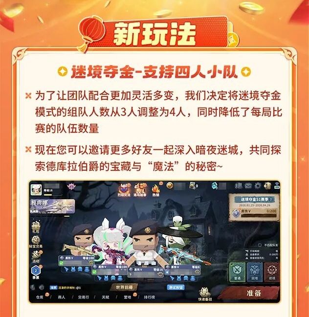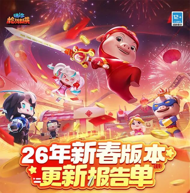 亲爱的精英们: 寒假欢乐启幕,新春的脚步也愈发临近!《迷你枪战精英》新春版本即将重磅上线,掀起一场热闹非凡的新春狂欢!万众期待的超人气新春联动—— 国民 IP 猪猪侠,也将惊喜登场!这位家喻户晓的热血小英雄,将亲自领衔点燃红包争夺战的激情序幕,邀你一同畅享福利盛宴!迷境夺金全新升级,重磅新增秘宝争夺事件,让这片火热激昂的战场,再添超多刺激反转与惊喜彩蛋!排位S13赛季携手夺金S1赛季同步热血启航
