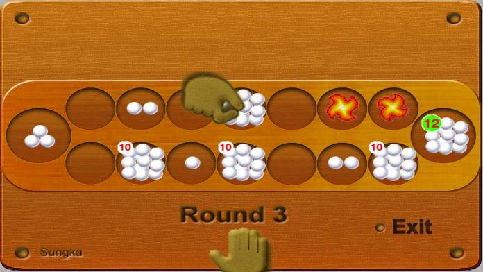 *** Initially the player select one hole in the 7 holes below "players camp holes". Then distribute the stones counter clockwise by putting one stone including the player home base.