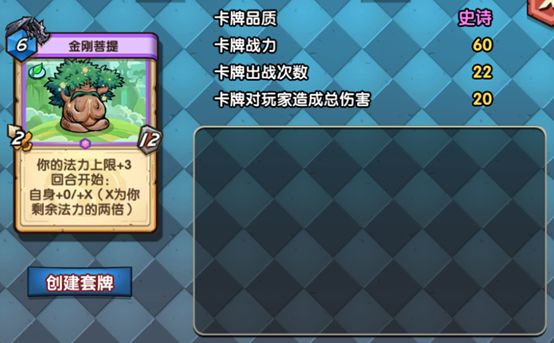 ——金刚菩提——解析:法力上限+3,2/12的身材可以当做肉盾,而配合上泰山之力、腾龙之力这一类能够将防御加在攻击上的卡牌,瞬间爆炸。使用技巧:可在前排做肉盾,也可选择放置中间,保护菩提的+3法力上限的效果。卡组构筑:叶蛮、叶书buff流或者叶蛮跳费流都是不错的选择。——驱魔道人——解析:3费2攻2防身材一般,但带有神佑技能,使这张卡的buff收益大大提高,可以随意增加buff。使用技