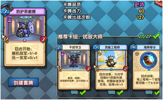 战役关卡多数为同1卡牌以n张的情况出现在牌组里;避免侥幸打后期的心理,打好前期基础是通向胜利的捷径。注:1.沉默:使生物卡特性无效化,但登场回合触发的特性依旧生效,且被沉默的生物卡可以无视“眩目”,进行正常攻击;2.(法力/攻击/生命)俗称XXX,比如逍遥琴师,3法力值,1攻击,1生命,俗称311。 《使徒信念》 💗流程特点:不息冬灵在死亡后即可重置复活,可抵挡一定的伤害,全期都会使用