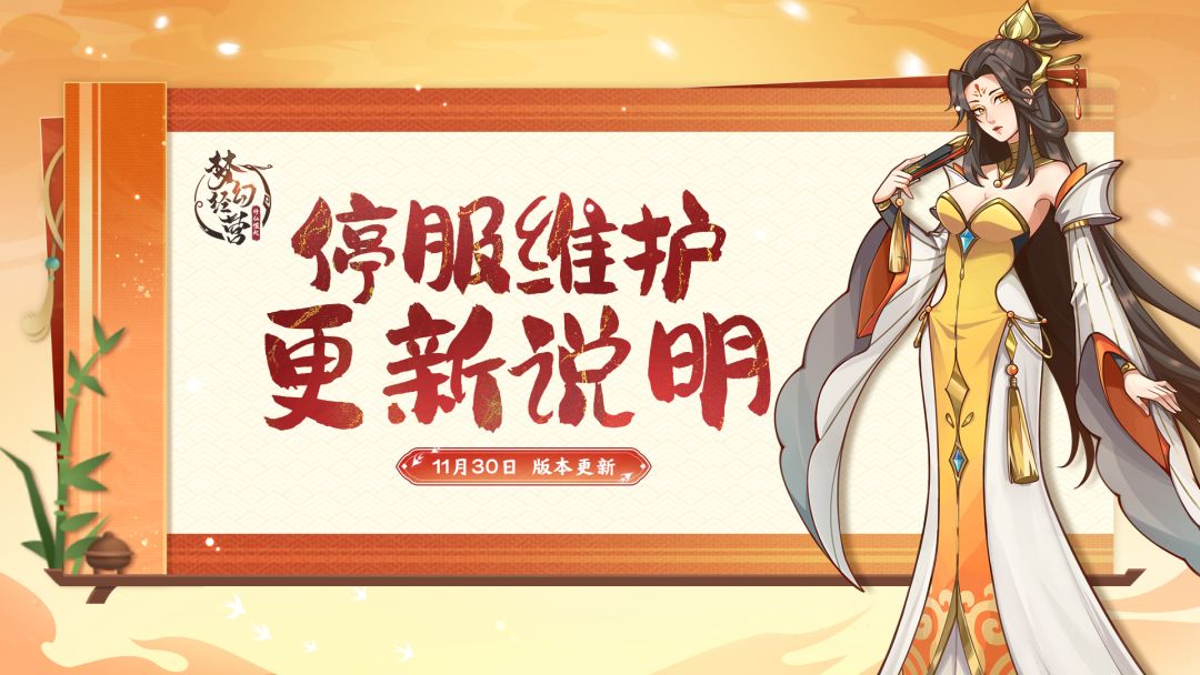 亲爱的宗主大人: 为了给各位宗主带来更好的游戏体验,宗门将于2023年11月30日10点(周四)进行闭关更新。预计更新时间约为1小时,会根据实际进度提早或推迟开服时间,请各位宗主大人相互转达,并提前留意更新时间,以免造成不必要的损失。 对于闭关维护期间给大家带来的不便,我们深表歉意。待维护时间结束,您只需下载更新包即可体验最新的内容!另外,各位宗主将会收到我们准备的一份小心意,敬请留意。感谢宗主们