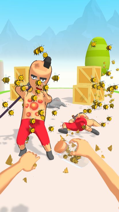 Throw the jar of bees at the enemy and eelease the bees in the jar ! Let the bees bite the enemies