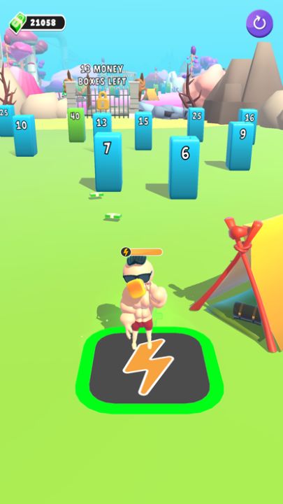 Push the boxes and earn money. Upgrade to character and earn more money.