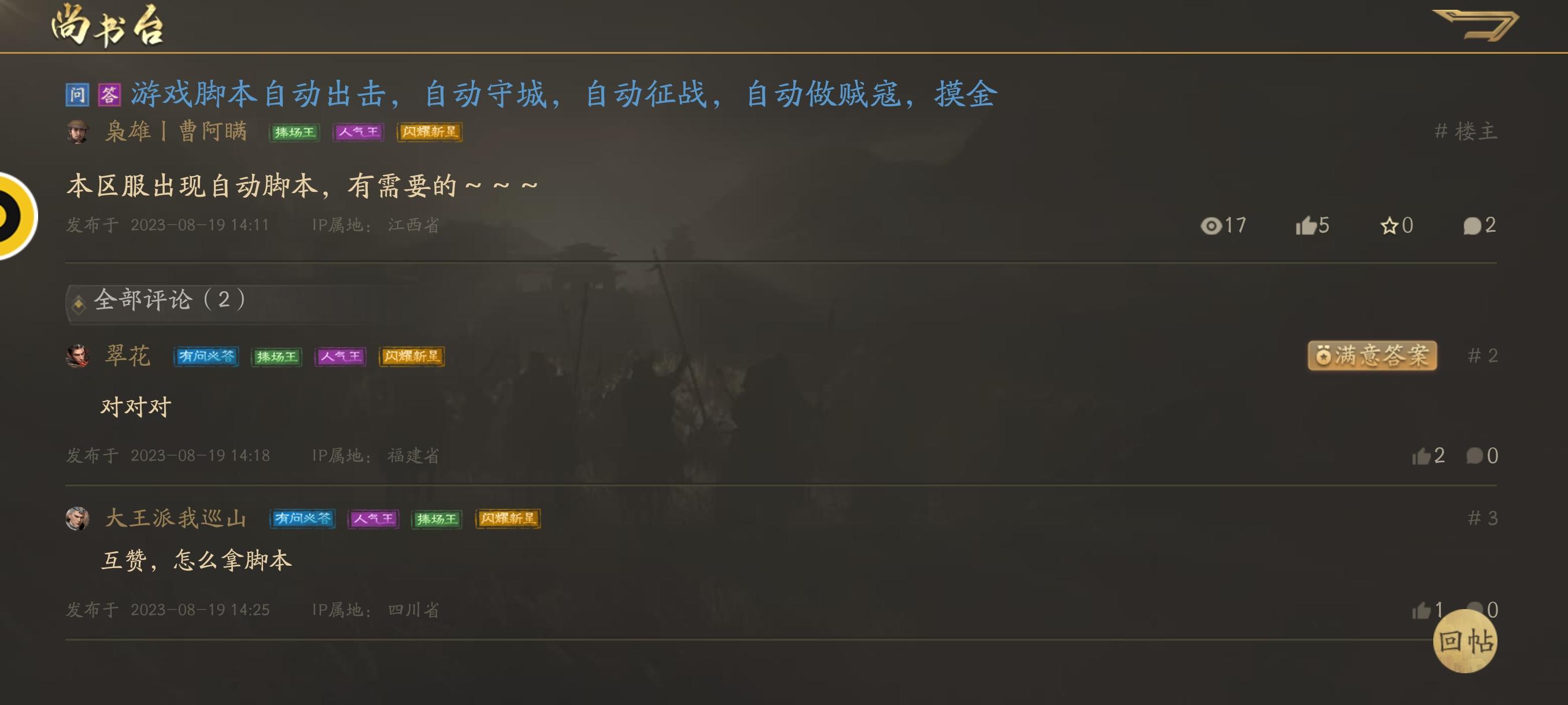 而且打击脚本纯属空谈,游戏内置玩家论坛公开兜售脚本,反馈客服,这帖子今天还存活