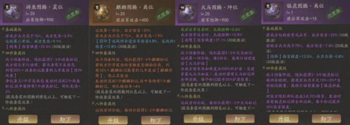 目前出了九种图腾上一期图腾的帖子简单介绍了一下各种图腾,这一期探索更适合自己,更有效的玩法。都是个人体会,大家有更好的想法,欢迎来探讨图腾一共有八个位置由“乾、坎、艮、震、巽、离、坤、兑”组成任意位置搭配四个图腾可以组成一套图腾,解锁四件属性搭配八个同种图腾,就可以解锁八件属性图腾是由八卦演变而来,这个游戏,越玩,越能体验到设计师当初的匠心,体会到我们文化的精妙,感悟到国风的氪无止境乾