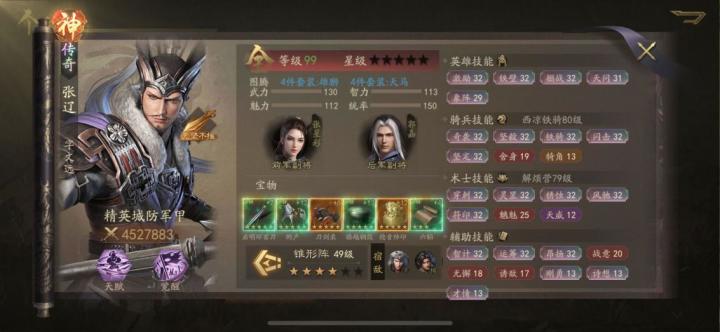 这一期攻略整合一下把四个赛季的心得都叙述出来,也方便大家参考,有建议也可以提一下。s1合区前几天的战力图,前一天的63万战力图没保存,先用这个顶了在零氪的情况下s1极限单将应该是七十万左右,如果是玩赵云的话达到这个标准会容易些一、S1张辽攻略1.技能①英雄技能天问 铁壁 激励 神威为了让远二回合闪击的伤害不因兵力衰减而削弱太多,天问、铁壁和激励是必须要学的,加上一个神威近一补伤害②