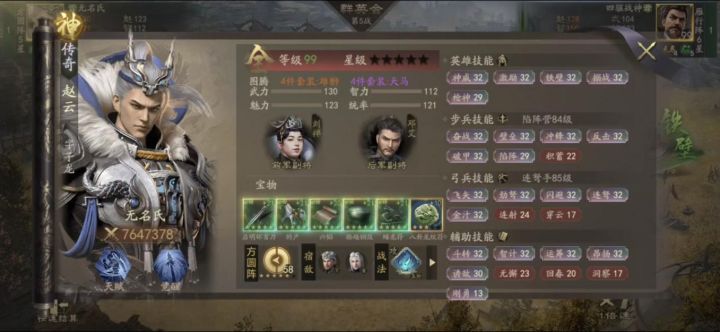 如题,神赵云一直是热门英雄,很多新手以及部分小诸葛都热衷接触和推荐这个万人迷,但一直也存在很多质疑,比如赵云容易被宿敌,赵云后期不强力等等。 那么今天楼主分享一份本服神赵云的战报,打消大家的疑虑。首先, 神赵云,764万战力,强21的云昭套装。副将刘禅+邓艾,图腾雄狮+天马,高级技能有枪神、陷阵、 积蓄、连射、穿云、洞察、回春、无懈等,但技能都不是满级。战法两蓝一绿。 对手神孙权, 强2