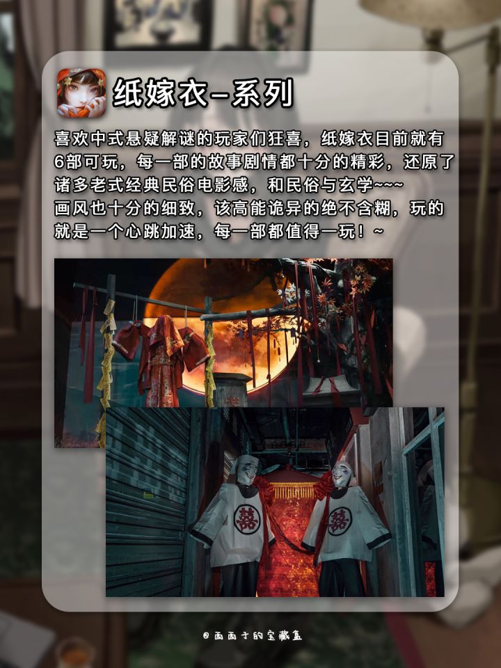 五载知音,与纸偕行,一路相伴的五年,大家第一时间会想到什么呢? 是面对封建思想时的反对,是面对迷信诅咒时的严谨,也是面对真爱时,那份坚贞不渝的誓言与坚守.... 相思不负,人间有情,都是纸嫁衣关于“爱”的主题,五周年之际,让我们一起回顾这份感动吧~! 在未来的时间,纸嫁衣工作室也会继续专注打磨作品,听取更多建议,希望可以继续为大家带来好的故事和游戏!