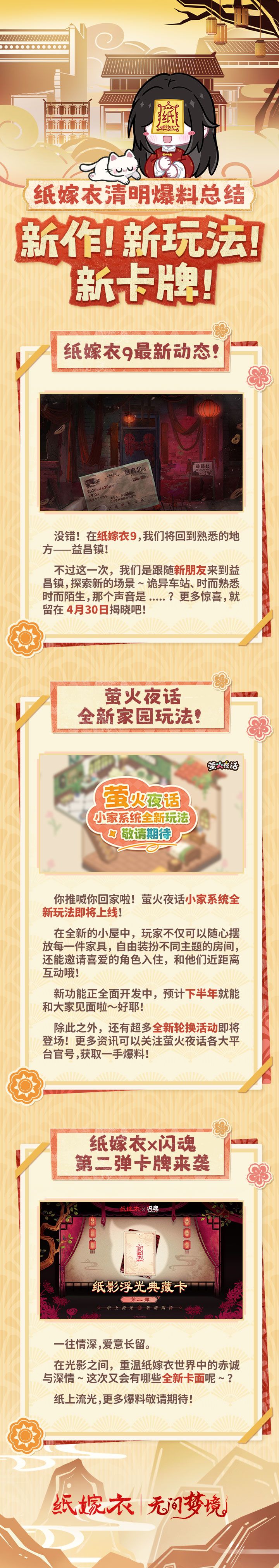 来啦来啦,是清明爆料内容的总结长图~不方便看视频的纸迷们就收下这份长图总结吧嘿嘿~ღ( ´・ᴗ・` )~关于#纸嫁衣9 的最新进度也会及时和大家汇报,阿纸有在更加努力哦~期待和各位相见!