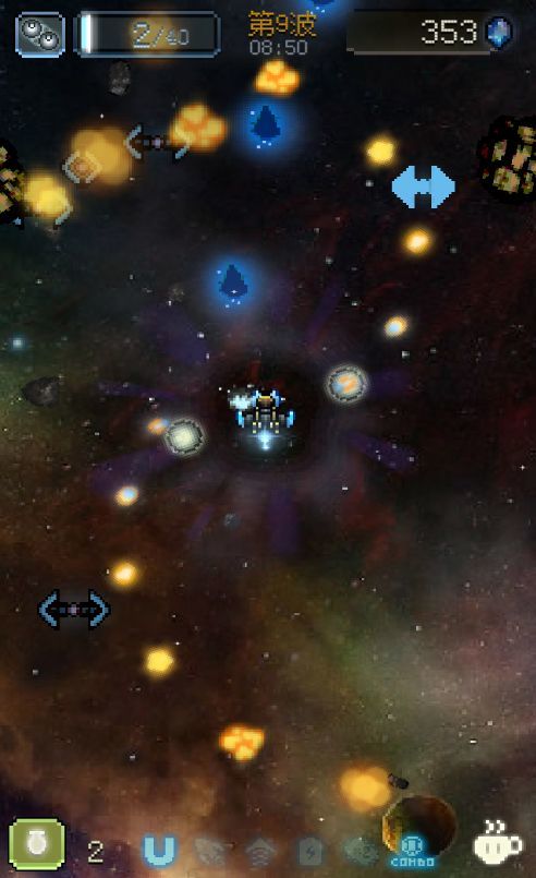 版本1.1.01.新春佳节,新增“凤凰”战机,挑战达到2017分可使用2.新年紅包3.复活增加一个炸弹4.新增4个星空背景5.补给机能更快出现在屏幕视野内,避免被击落后掉落的道具看不到6.敌人不在很边缘的地方刷出7.优化敌人子弹颜色8.敌人发射子弹之前会有预示灯9.敌人不再从底部发射子弹10.低级敌机不再是100%发射子弹,而是以一定概率11.减少蓝色方块障碍数量12.战斗