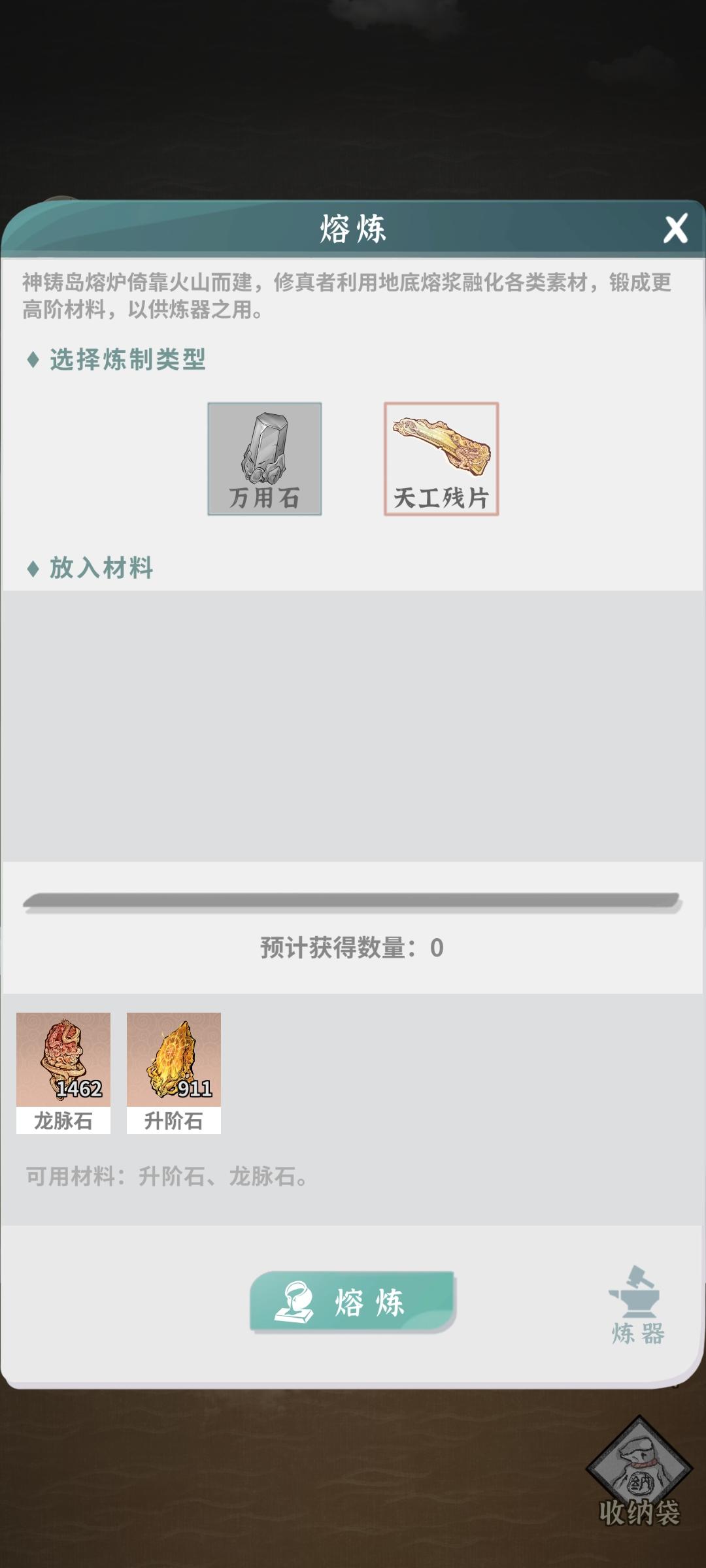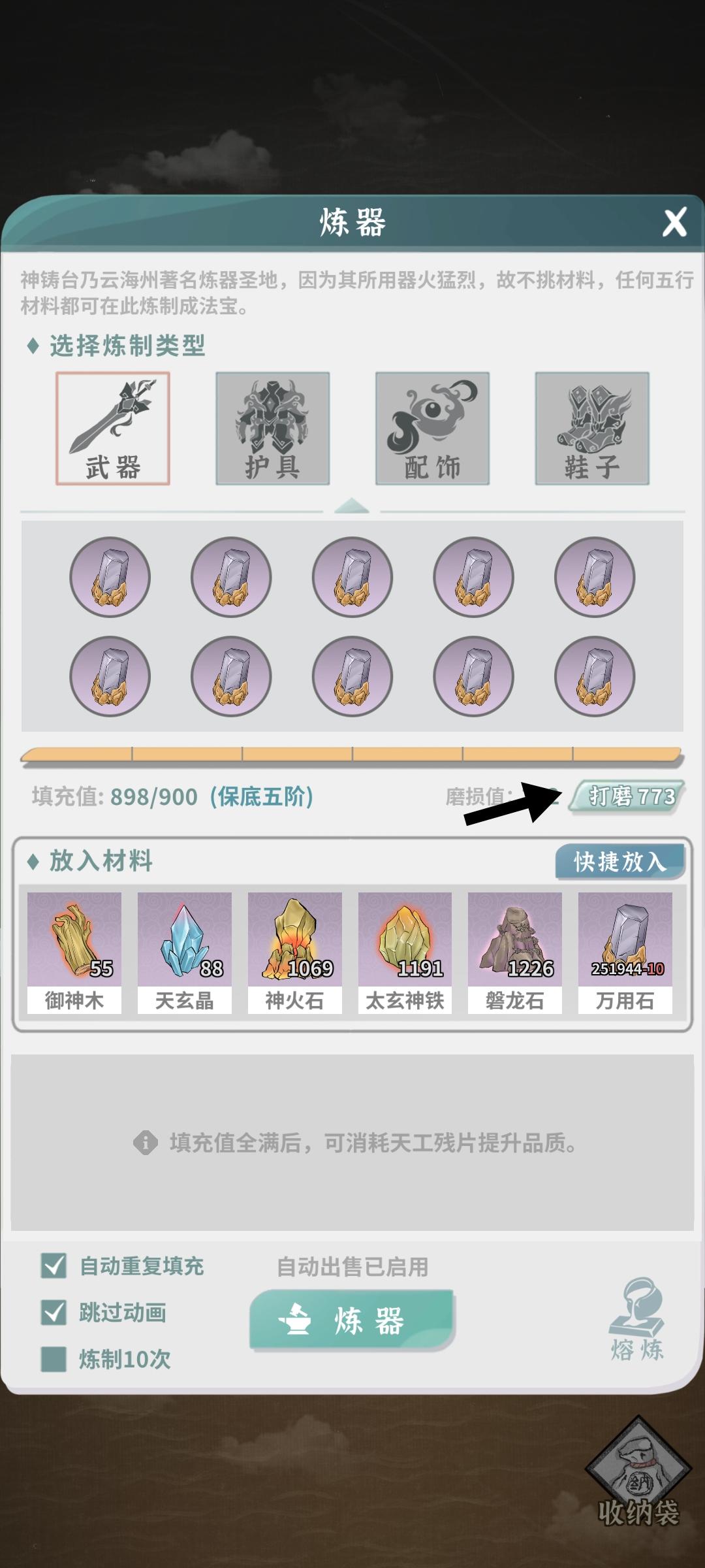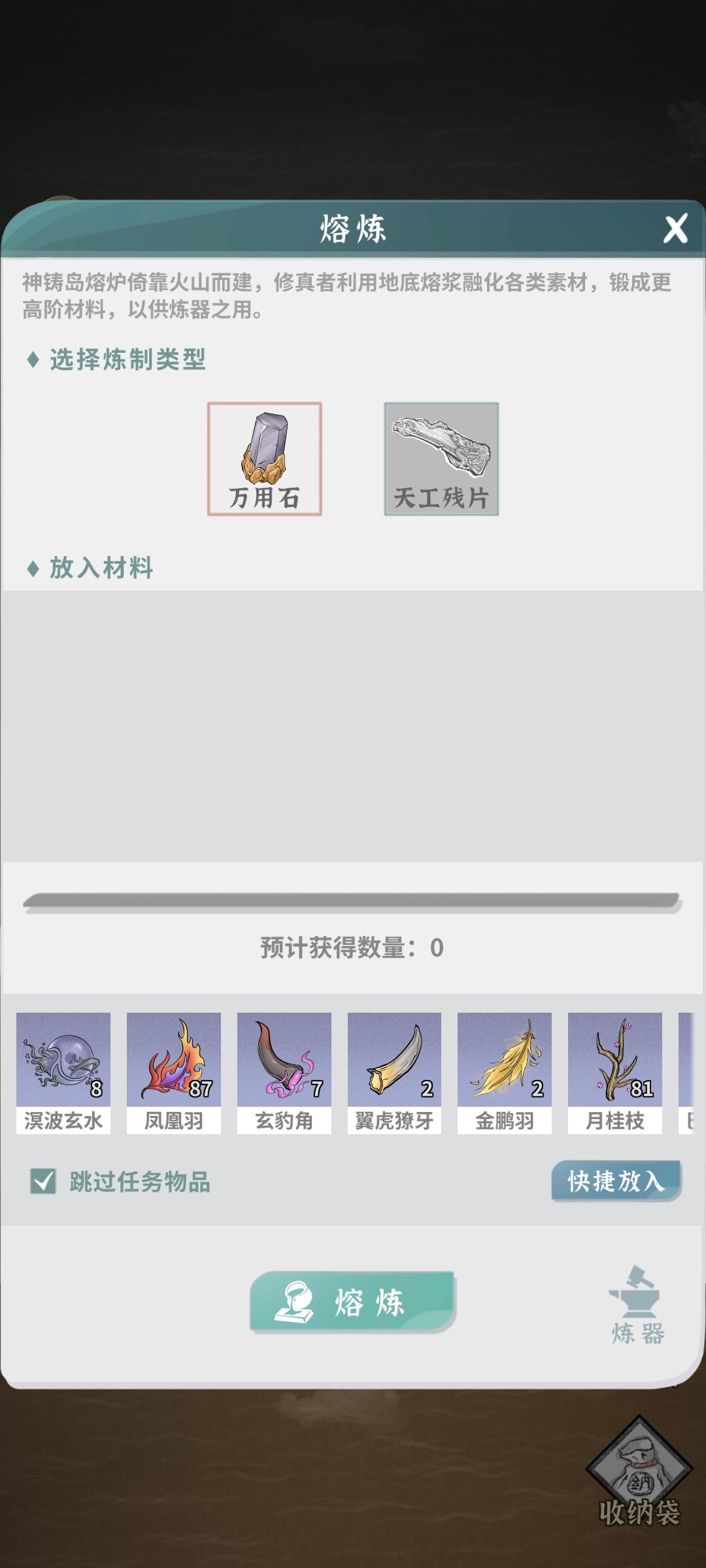 除了每日副本会掉落神品法宝,还有两种获得神品法宝的方法。第一种就是锁妖塔用引妖香刷梦魇十一及以上的难度。第二种就是在神铸岛这里,熔炉制造万用石,用升阶石换天工残片,然后来神铸台,放入万用石,勾选提高品质,开砸。(分解器纹也能获得天工残片)砸完多次后,需要打磨,这样能保证一直出神品法宝。