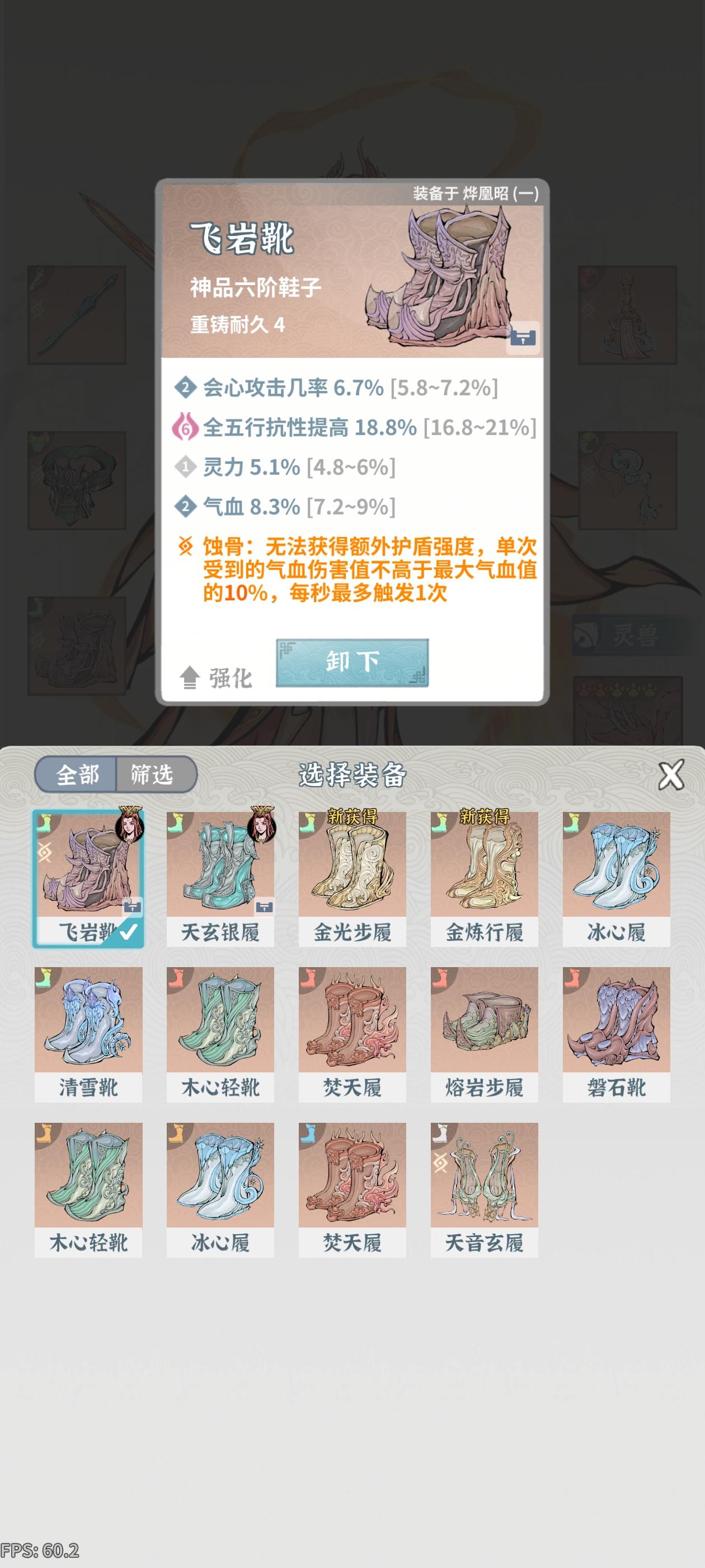 很多萌新多半进图就被师尊秒分享下火剑过图方法(本人另一个号也用土枪秒伤1.6亿左右过师尊)先声明:本贴非攻略,我只是个普通玩家正题: 装备词条 抗性百分比(稀有)>抗性>首领增伤>放技能回血>气血百分比>气血 装备器纹 如图就行 图中圈的较重要 钩的可有更好其余角色配件 主角(保证存活):红莲 (可续燃烧触发火剑功法增伤)青龙(解控)冥渊(减伤)铃铛(削血) 功法加异常(赤火,飞烟,冰心