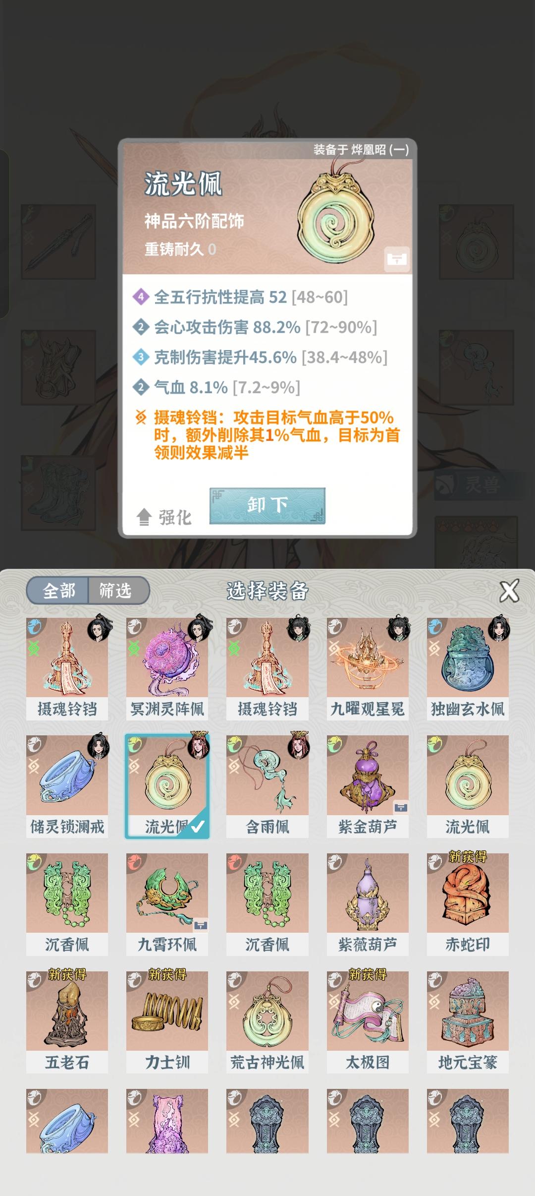 木奶法宝器纹:乙木辟邪剑、玄都天冥甲、岩鳞破龙履、阴阳双鱼珏、拘灵缚魂戒、翠云仙羽扇法宝词条选择:灵力%、气血%、金木水火土系护盾、气血回复、固定气血契灵:丑牛面具:丑牛、午马、亥猪、未羊