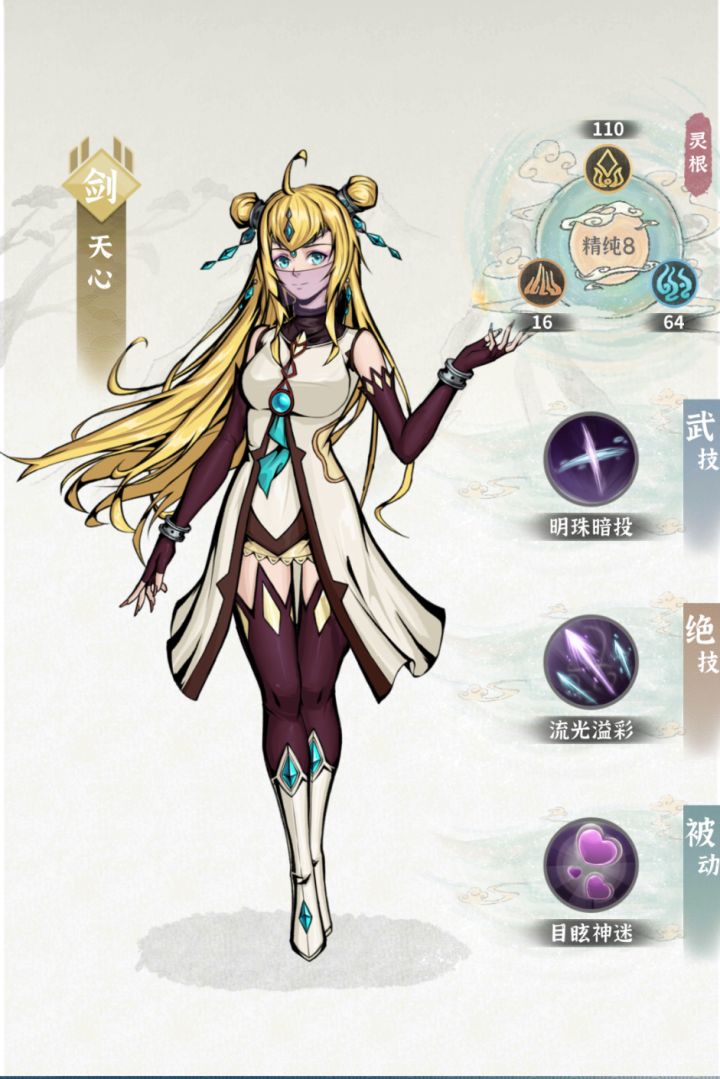 天心是我们老游戏【流沙之城】里一位独具特色的角色,因为她的大招很特别,攒满6枚天晶即可释放,不需要等技能CD,且是少数同时兼顾两种伤害类型的角色。最近她追随年兽来到了云海州,等待着大家的招募。通过活动可以轻松获得这名角色,并解锁3个等级的本命,相信可以成为大家的好帮手。角色定位是辅助+单体输出。首先,这是一名金系剑修角色。普攻可同时造成金系和水系伤害。绝技没有CD属性,由普攻攒够6枚天晶