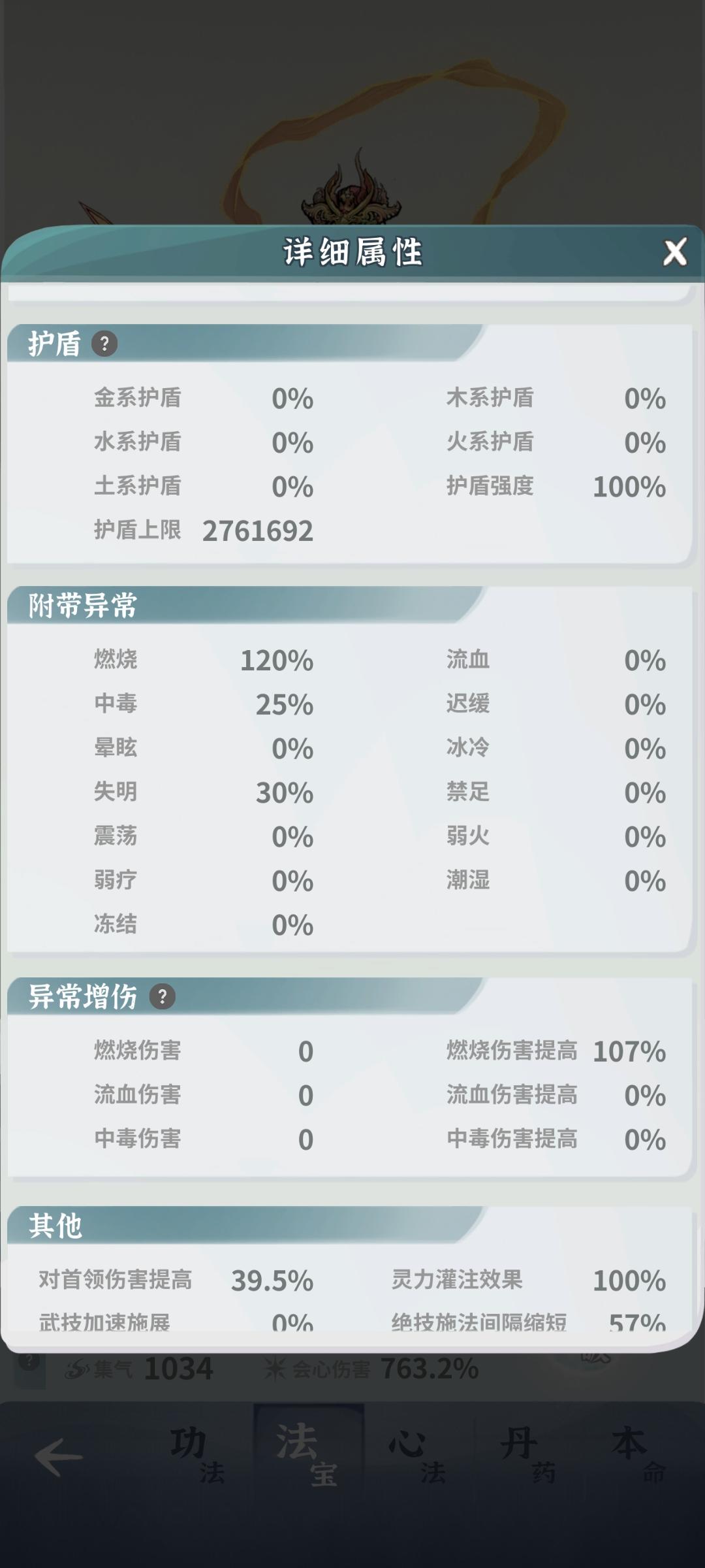 看论坛说要6命,还要金衍术打护盾。6命还要攒一段时间,金衔术小怪帅护盾很高,打BOSS就不行了。所以自己凑了血量,首领伤害的功法。这个属性大家可以借鉴一下。摸了很多次,要不然最两个打死,要不然超时。神宝燃魂瓶满级,万魔图四级