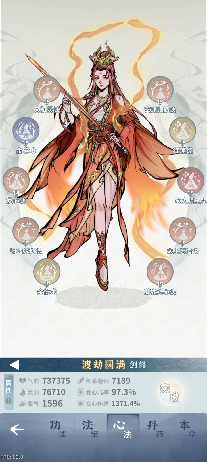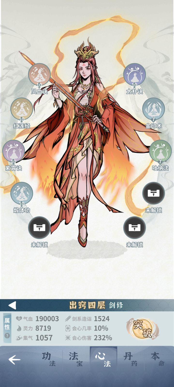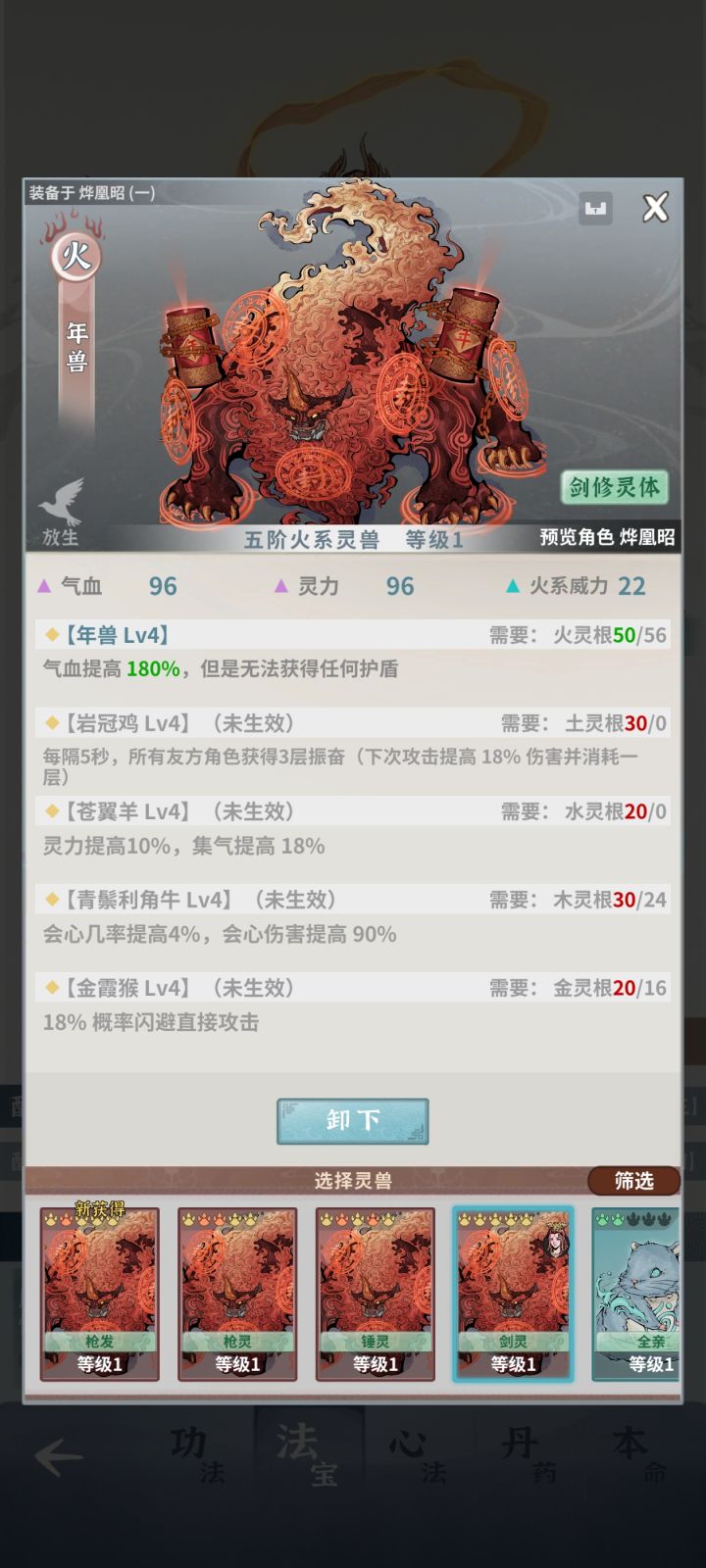 图里是我现在的进度,主线现在卡天魔血阵了,本命现在也提升不了,差的玄晶太多了。我就是想问一下,现在是不是可以开始研究一下灵兽和法宝了?我法宝现在除了器纹能用,属性一塌糊涂,灵兽也没搞过还是系统送的,灵根也提升不动,差的火果子太多,太上忘情诀我已经换了,但灵根不够学不了。。。