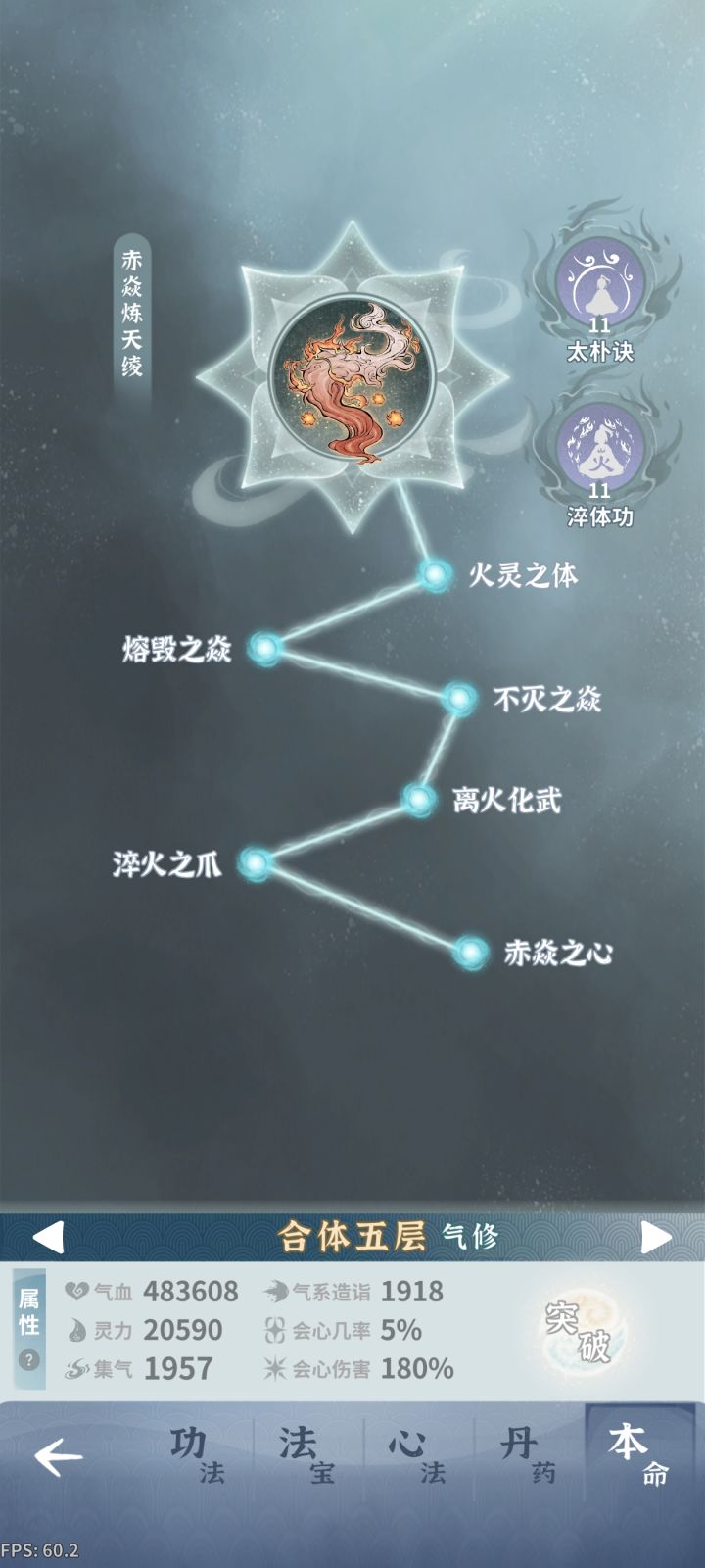 器纹是浴火涅槃环,金缕宝衣,浑天星芒履,阴阳宝鉴,冥渊灵阵佩,飞行器纹每个火系功法增加灵力。词条是抗性和血量为主。纯肉流要怎么改?