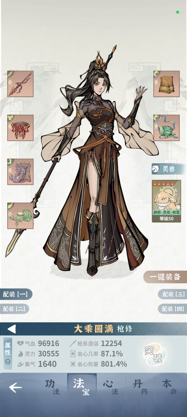 衣服带灵转血最优,可以提高盾上线,鞋子可以换20减伤鞋。最重要的就是灵窍丹18个,吃满和没吃满区别超大,宠物必须双仙,带土牛仙很重要