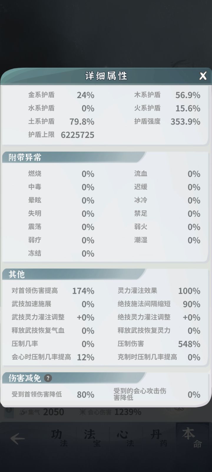师傅舍会心率,换取更高的气血护盾克伤和首伤,靠九耀打会心和压制,均匀利用每个乘区。测试了很久,发现是完全可行的。伤害不比常规会心低,师傅也肉得多。之前只能叠到60%首伤减免,在出了新天赋辟邪后能叠到80%首伤减免,直接肉了一倍,强度直接起飞,在漩涡10洗澡怪连层皮都刮不掉,三命大乘师傅即可单刷漩涡10。装备词条如图,颜色不必刻意追求,种类一致即可。梦21难度较高,师傅需极高练度才可单刷,bo