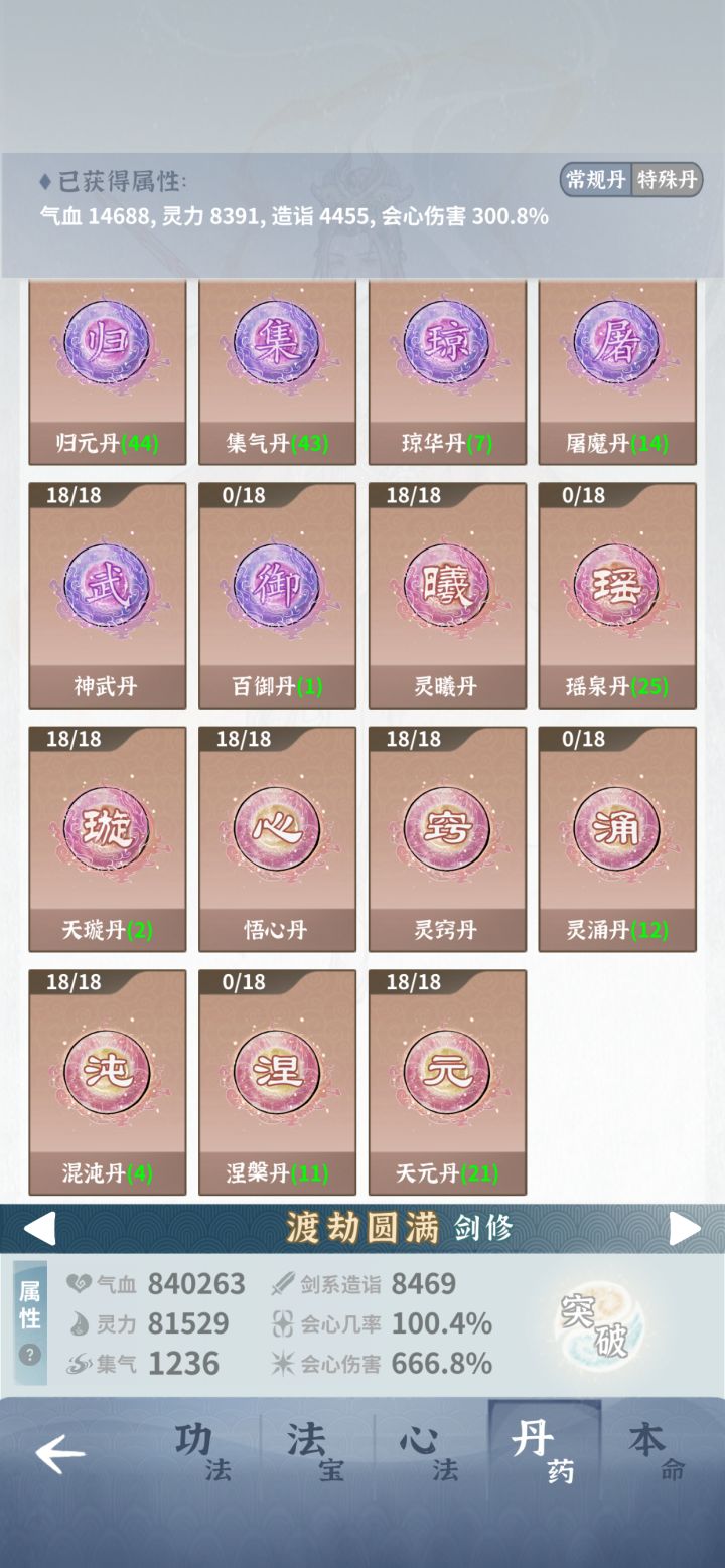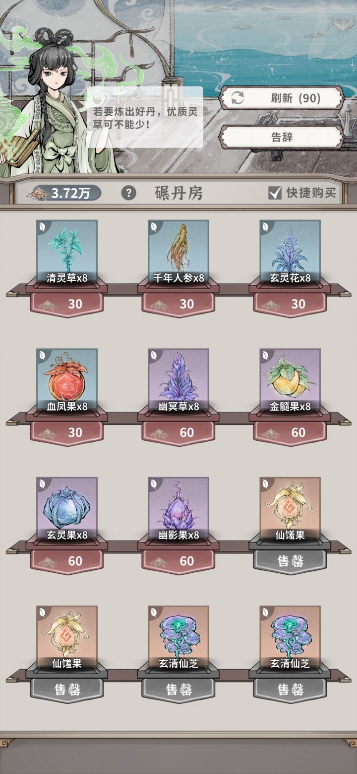 入坑10个月萌新,每天上来收收菜,屯了比较多的普通丹,偶然发现碾丹房才是老咸鱼的终极归宿,加血量法力值的普通丹碾碎,回收的材料可以在碾丹房买灵草,灵草炼丹回收再买灵草,左脚踩右脚螺旋升天,具体怎么买看大家情况吧,我之前一直没买过,发现之后第一天刷了50次,后面每天刷新10次,10个月的存量我现在主c特殊丹3套多一点。 #碧海苍云录
