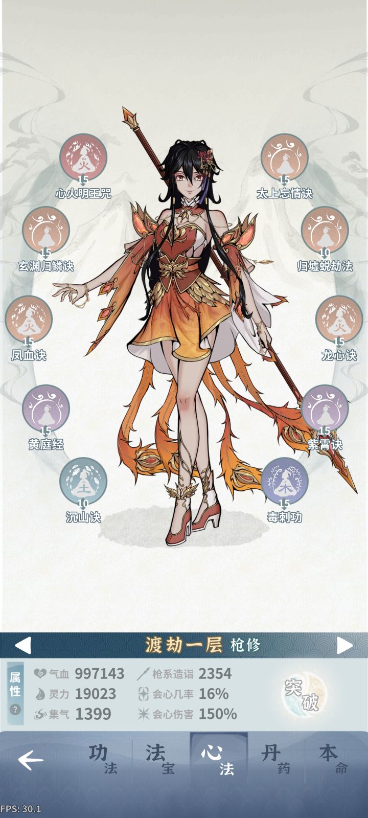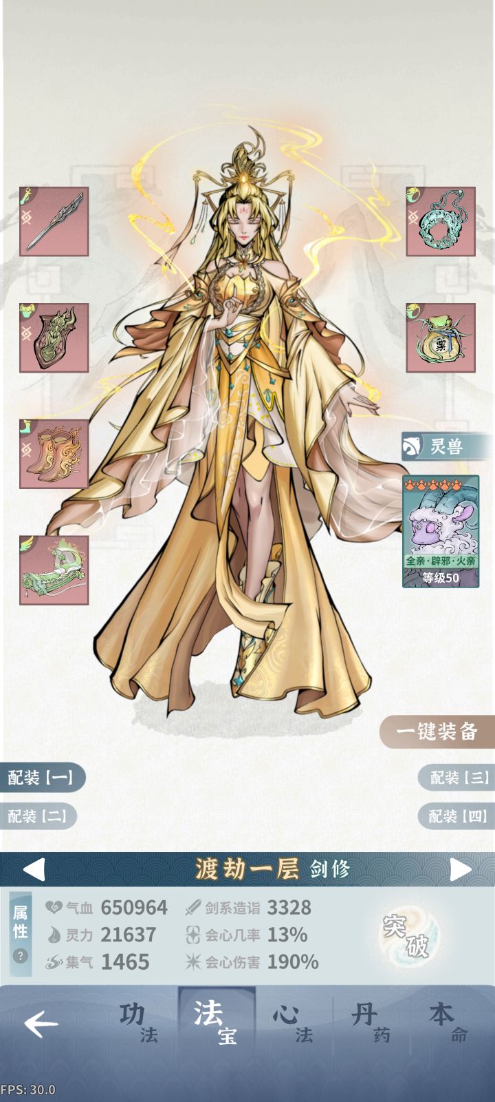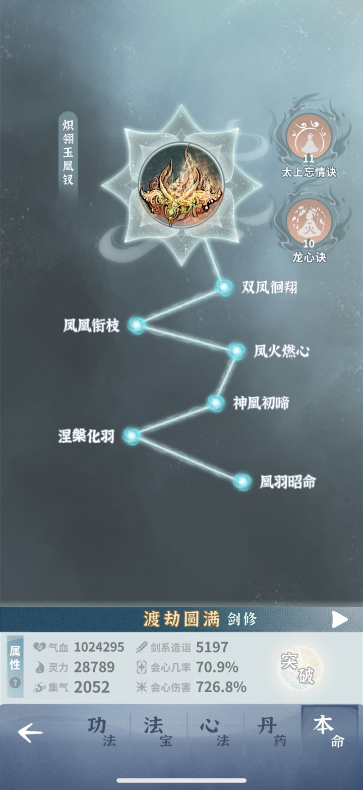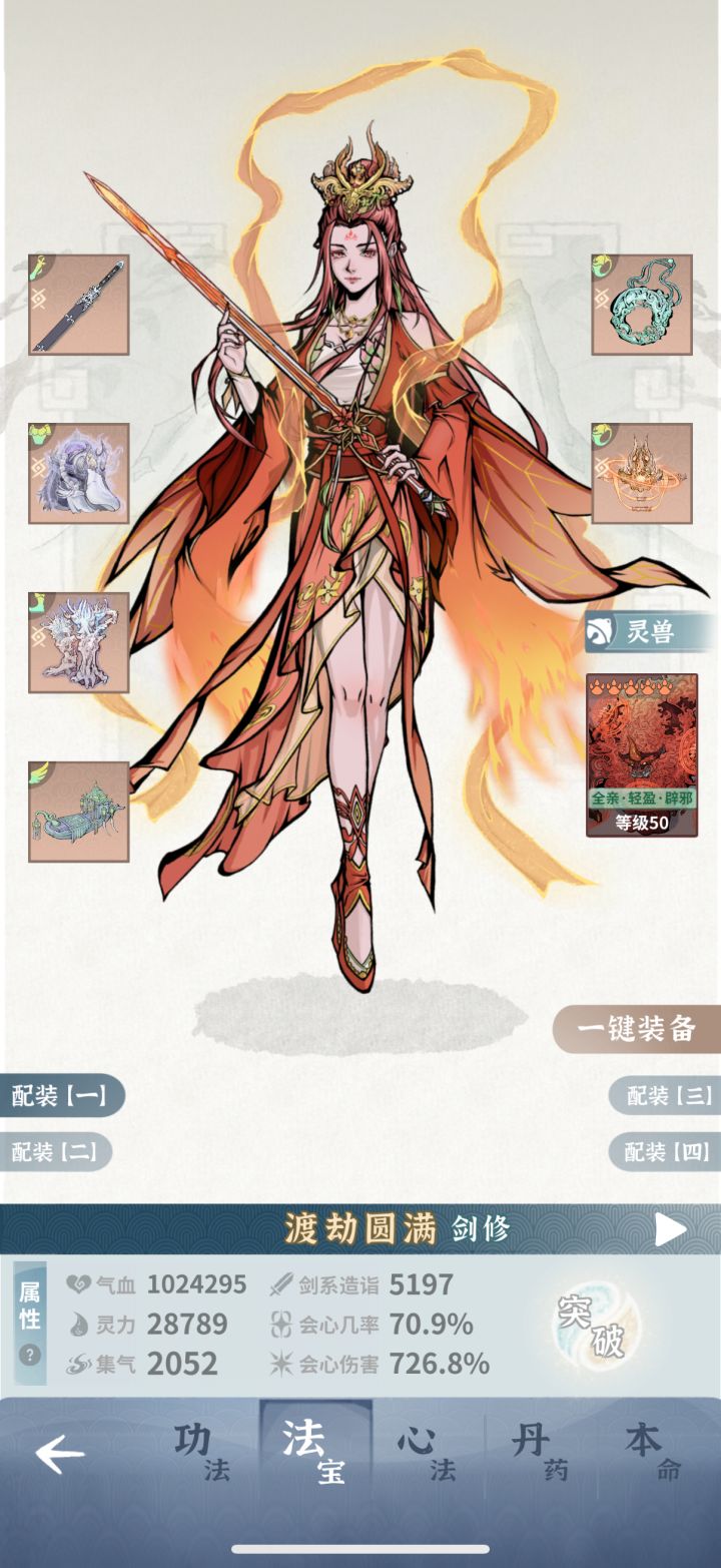 第一次玩这个游戏,开局借鉴了攻略区的单火剑开局,但是渡劫篇没有讲解如何处理古钟副本(多眩晕),也没有养其他角色解控(青龙衣),很多人就会卡在古钟!这篇攻略的意义在于,可以使血抗火剑快速过渡,直达龙宫后慢慢转会心流,养成更为平滑。核心思路:1、保证大招cd缩减85以上;2、心法:金芒术(失明)+幻花诀(禁足)。3、铃铛饰品(可选)+藤龙缚心诀(可选)4、一倍速