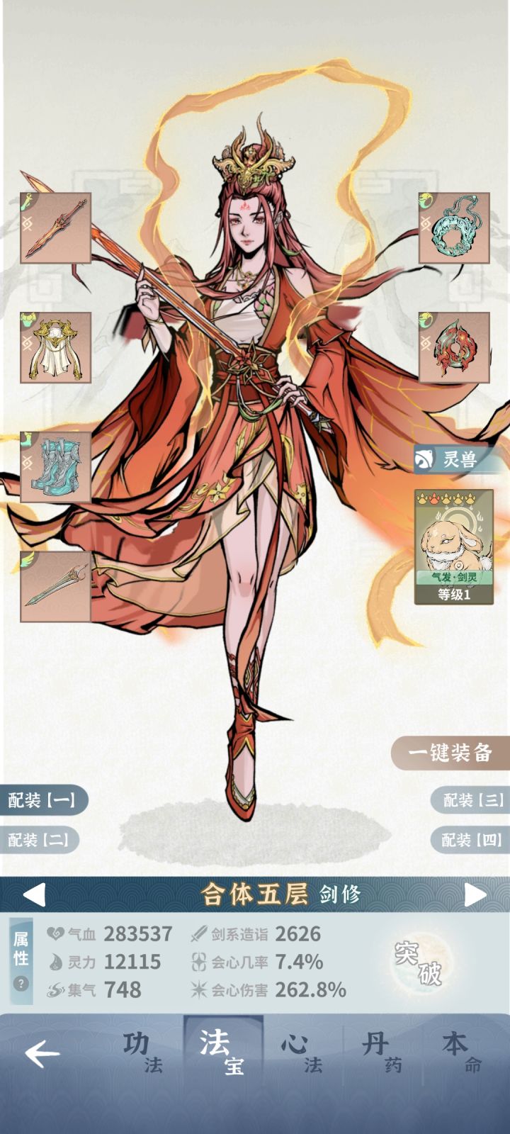 狐狸和火剑都死不了,就是打不死火剑盾叠不起来武器:红莲、衣服:九冥、鞋:蚀骨、飞剑:契灵火属性、配饰:地元和九曜