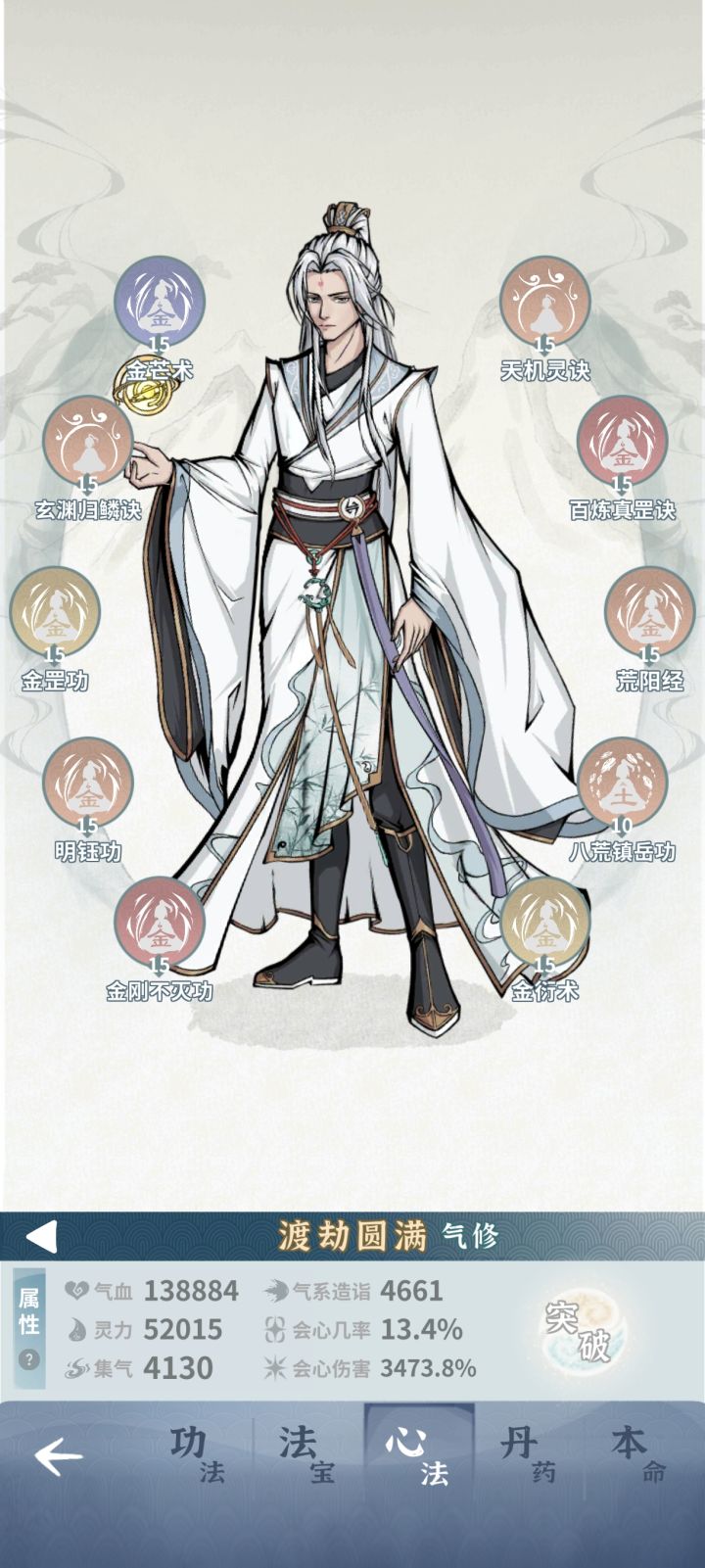 今天刚血抗流转会心流,上了金衍术,宠物洗火雀没洗出来有点伤,装备差不多都洗出来了,契灵11级,4级赤堇,4级卯兔,心法大佬们有没有什么推荐
