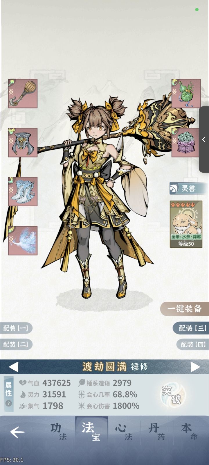 目前主线结束,火剑渡劫圆满,精炼9,契灵还没满级,丹药缺口较大,神女刚养第二天。