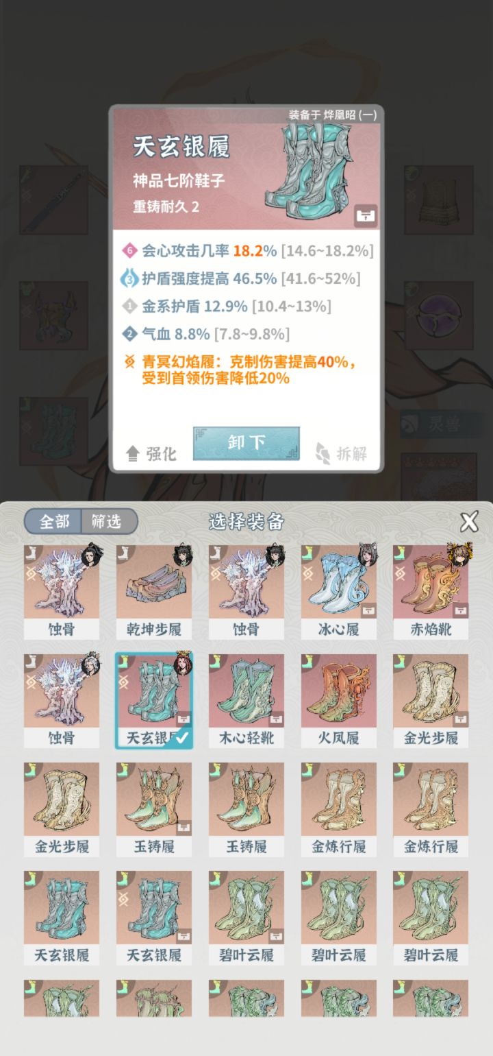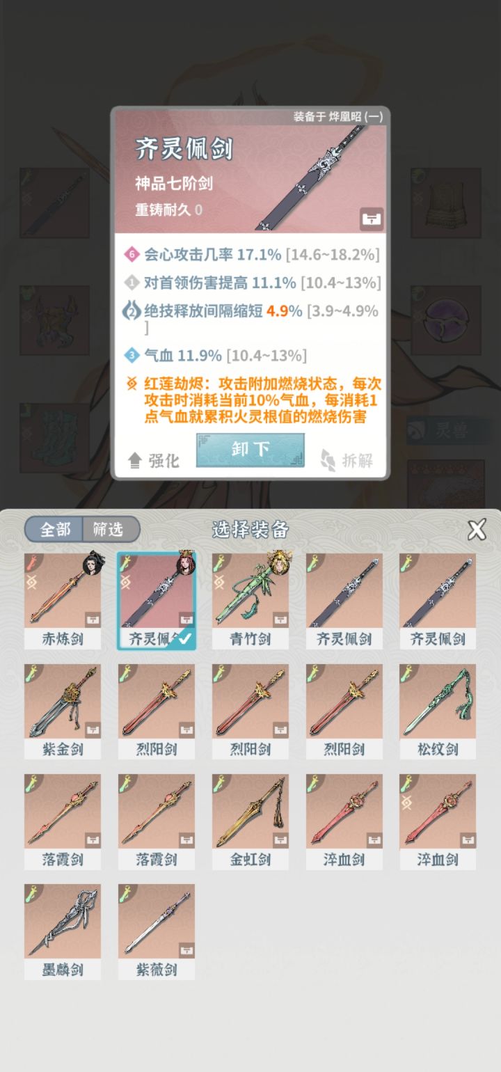 火剑武器刻纹一定用红莲吗,还是说只有这个对她的提升最大?可以换成神秀天光剑吗鞋子就剑心足履这两个搭配一起可以吗,最后那两件衣服血氅,修罗铠能用吗