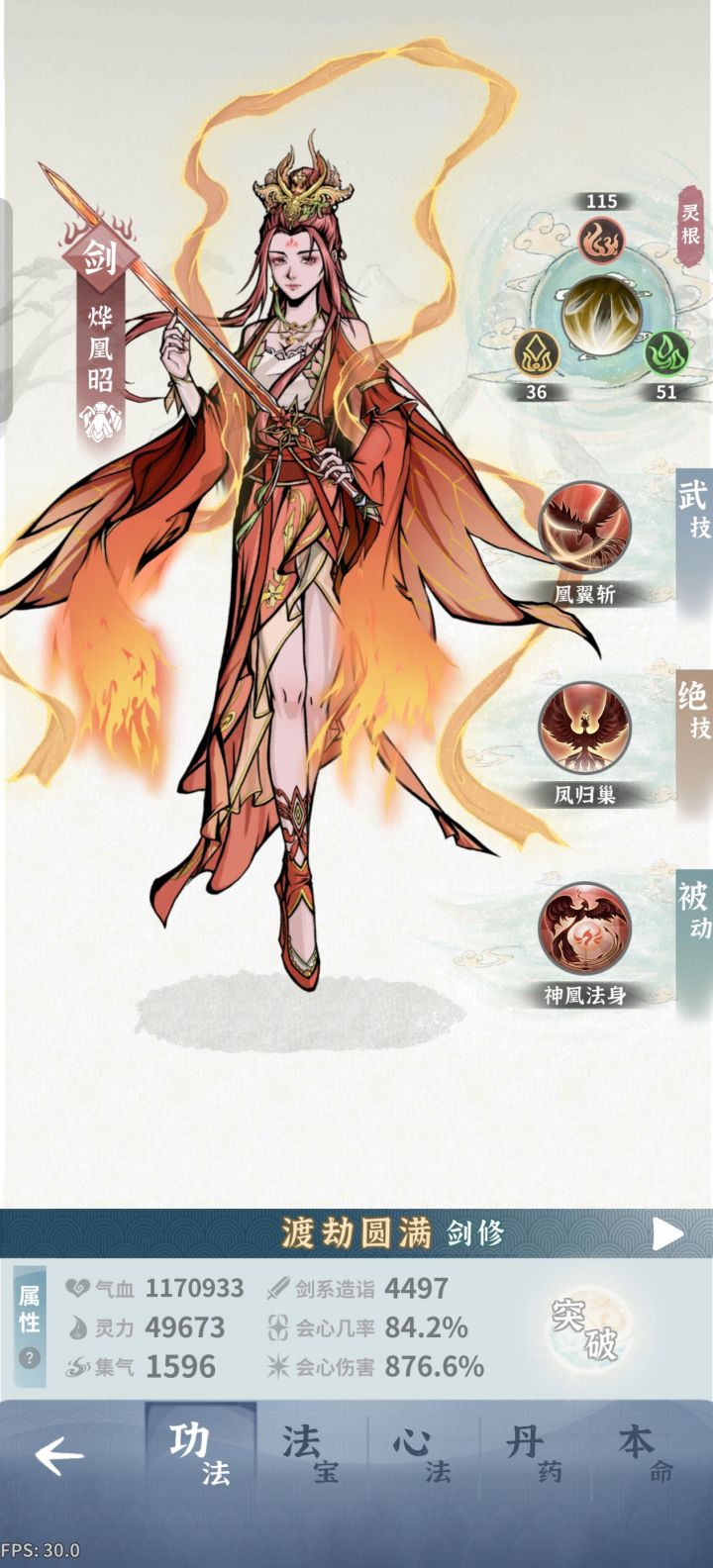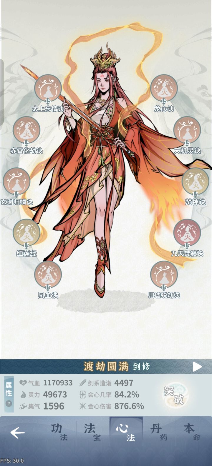 目前主线结束,火剑渡劫圆满,精炼9,契灵还没满级,丹药缺口较大,神女刚养第二天。