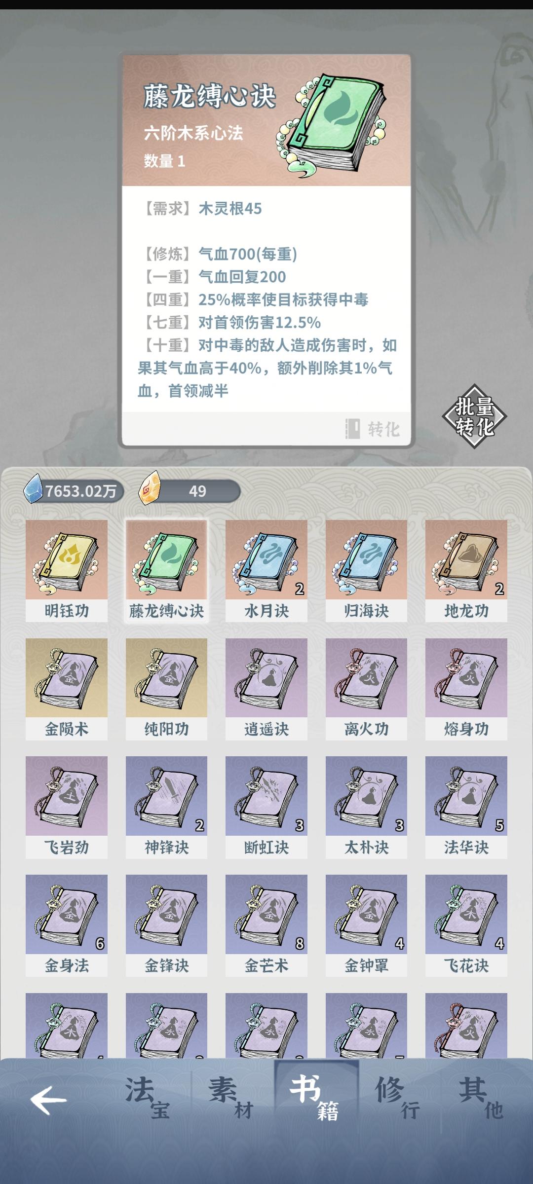 好像没看到论坛有这个流派,干脆写一篇,算是群里老登的木奶主流之一,顺便完善一点细节。养木奶时机:有一个前排(如狐狸、金锤),契灵最少20级(加上灵根精纯10够吃玄冥真解)。丹药看个人,不强求。新手第二个角色别养木奶,没有用。闪避流核心:75闪避(30水月诀+30猴+15鲲鹏鞋)+玄冥真解(七阶水功法)闪避流优势:回血多的同时很难死。可在没沉重debuff的关卡游龙(目前梦22以上到梦29、龙