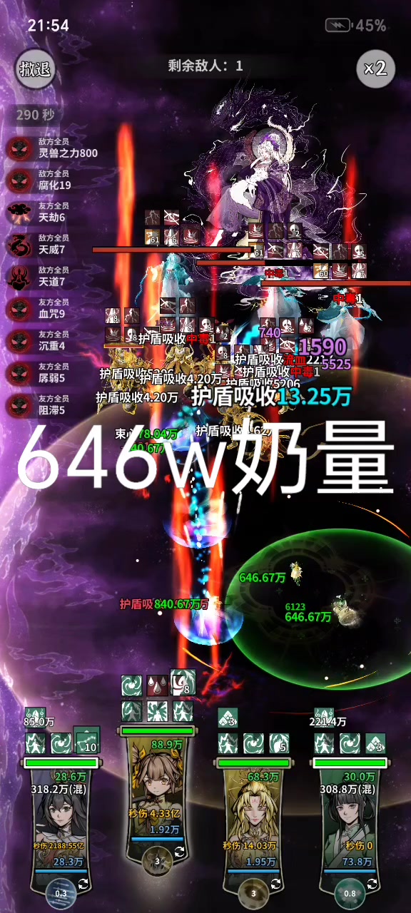 感觉能打过紫极龙宫的伤害应该都够,输出不够的就照我这样开局把火剑往下拉,按住不动,等带盾怪快出来了再放手,利用小怪回盾同时清掉大怪的盾。如果这样还过不了的话,就带个稍微肉一点的前排试试吧[表情_流口水]注意火剑位置偏中间比较好