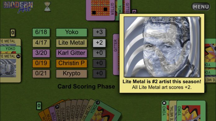 Modern Art: The Card Game is Reiner Knizia's classic game of card management and valuation. Given a hand of works from five different artists, you must drive up the prices of your favorites while simultaneously holding back those artists' works to as...