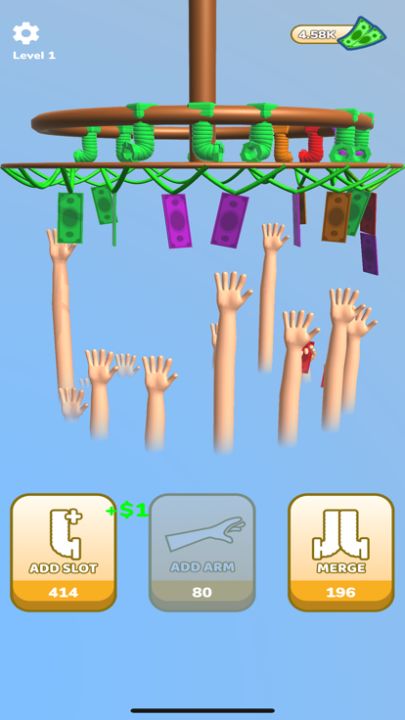 You can collect money with your arms by tapping