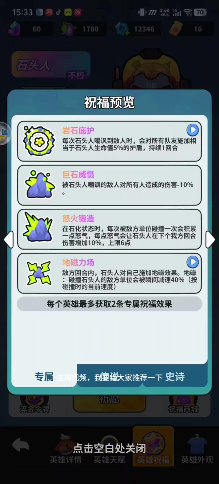 卡组阵容,嫦娥,猩猩守卫,屠夫,火爆小子 天赋等级都是1,2级,这套卡组适合大多新手,战力速成 嫦娥专属祝福月神恩盛,月华涟漪 适合传说祝福贯穿,缓冲,强体,曙光,不屈,汲取,援助,坚韧 猩猩守卫,专属祝福香蕉盛宴,不动壁垒 屠夫,专属祝福伤口撕裂,反向突袭 猩猩守卫和屠夫,传说祝福,缓冲,曙光,不屈,援助 火爆小子专属祝福,焚血狂攻,炎铠护身 传说祝福贯穿,追击,英勇,不屈,缓冲,汲取,超限 这