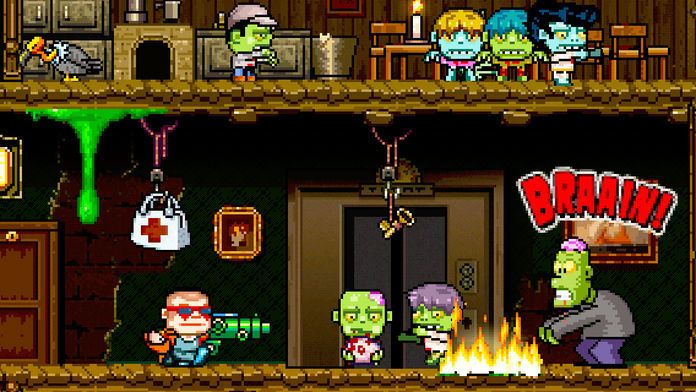 只用两个按键(跳跃和射击),你将可以玩一局局疯狂的游戏,在这次游戏中,你可以享受着仿佛永远杀不完的僵尸一样的快感。